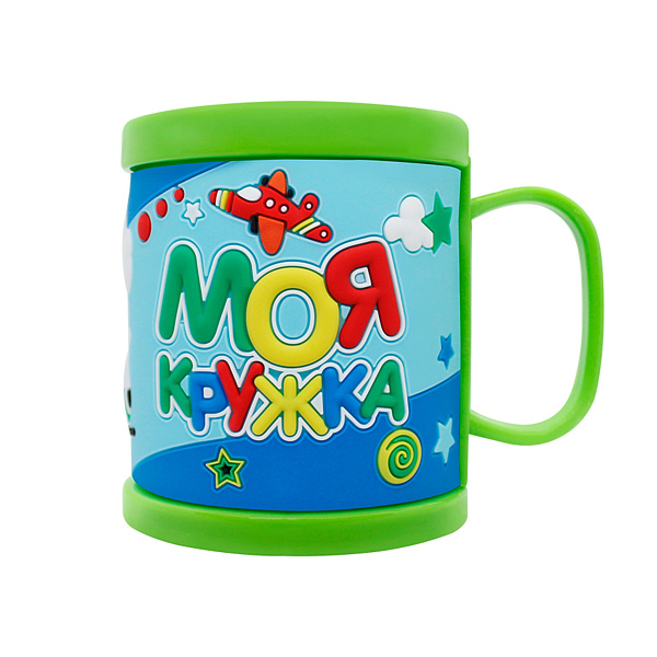 Детская чашка из ПВХ с надписью «Моя кружка» сделана аккуратно и детализированно. Это милый и необычный подарок для ребенка с 3 лет. Оригинальная кружечка станет одной из первых личных вещей малыша. С ней он научится самостоятельно мыть посуду и ставить ее на место. Кружка изготовлена из яркого зеленого пластика с резиновой вставкой, которая представляет собой красочное панно с мелкими деталями: звездочками, облачками, самолетами и цветными буквами. Это чудесный подарок для мальчика: любимого внука или сына.