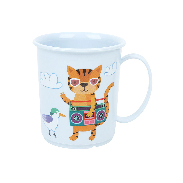 Кружка объемом 180мл предназначена для малышей и привлекает их внимание рисунком с тигром. Посуду можно использовать для холодных и горячих напитков, температура которых не более 40 градусов. Ручка на кружке широкая, благодаря чему малышу удобно держать ее. Ребенок сможет попить самостоятельно, удерживая посуду маленькими пальчиками. Чашка не разобьется при случайном падении и имеет небольшой вес. Для изготовления применяется пластик, в составе которого нет бисфенола А.