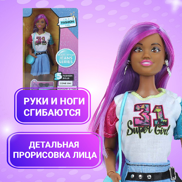 Кукла Anlily Мулатка с фиолетовыми волосами с аксессуарами