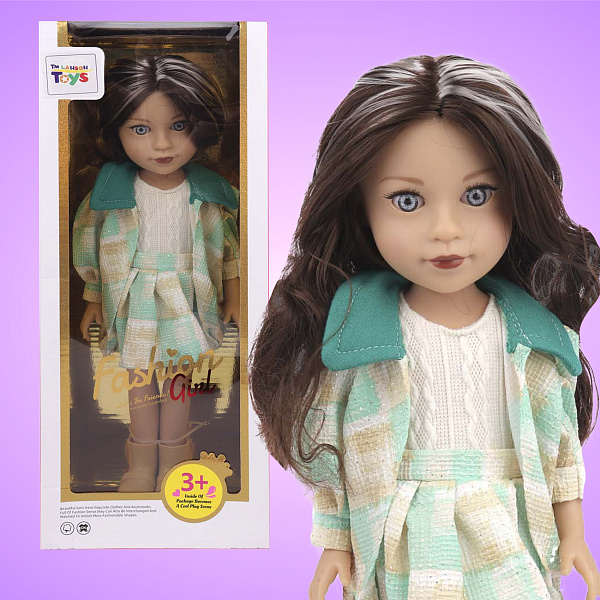 Одетая в модный комплект, который состоит из стильной куртки и кокетливого платья, кукла выглядит невероятно привлекательно. Её наряд выполнен в нежных пастельных тонах с использованием приятных на ощупь тканей, что придаёт ей дополнительную очаровательность. Волосы куклы можно легко расчёсывать и укладывать, создавая разнообразные прически.