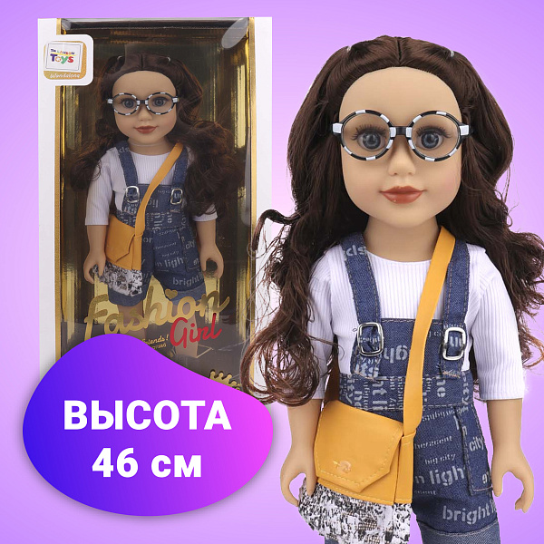Высокая кукла-брюнетка в очках, одета в модный комбинезон и с сумкой через плечо – идеальная подруга для игр и развития воображения детей. Ее длинные каштановые волосы можно расчесывать, заплетать и укладывать в разные прически, что помогает развивать мелкую моторику. Современный облик куклы в очках делает её не только стильной, но и поощряет развитие полезных привычек у детей.