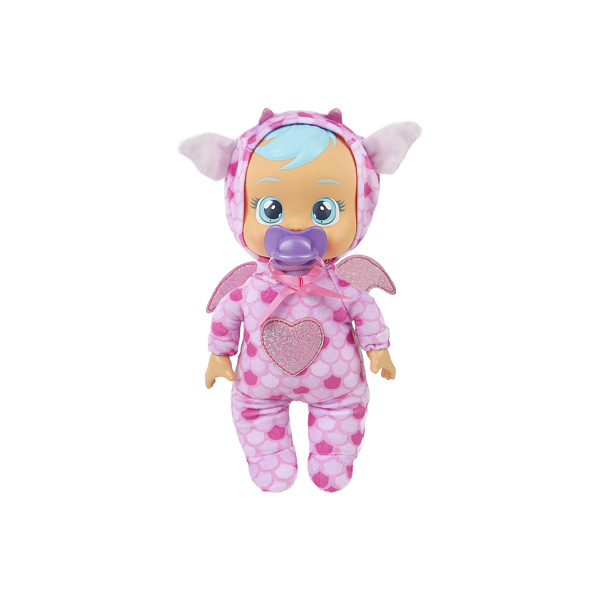 Пупс одет в плюшевую пижаму в виде дракона с рогами и ушами на капюшоне и крыльями с хвостом на спине. Рисунок ткани имитирует фиолетовую чешую. В комплекте специальная пластиковая соска.