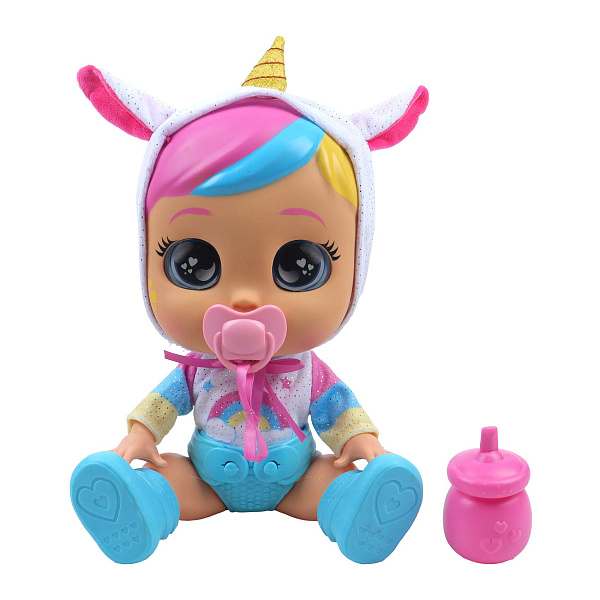 Кукла интерактивная CRY BABIES ДРИМИ – это реалистичная и забавная игрушка высотой 30 см, которая станет отличным подарком для маленьких детей. Кукла одета в яркий костюм с единорожьим капюшоном с ушками и рожком, а также имеет аксессуары: пустышку, бутылочку, подгузник и обувь.