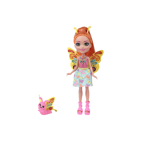 В подарочном наборе содержится кукла Белисс Баттерфляй и ее питомец Дарт. Белисс одета в красную блузку без рукавов и голубую юбку с красочным принтом. За спиной у нее большие крылья, подобные крыльям бабочки, на ногах – красные высокие ботинки. Дарт – маленькая желтая бабочка с разноцветными крыльями. Эта пара неразлучна, с ней можно придумать множество увлекательных игр.
