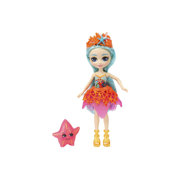 Стария и Бими – игровой набор из коллекции кукол Enchantimals. Стария – морская дева, дитя волн и коралловых рифов. У нее красивые пышные волосы цвета морской волны, она одета в туфли золотистого цвета. На голове коралловая корона. Бими – маленькая морская звезда, друг и постоянный спутник Старии. Голова, руки и ноги куклы подвижные. Куклы можно использовать для сюжетно-ролевых игр, что способствует развитию фантазии и творческих способностей ребенка.