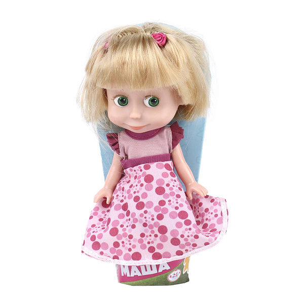Кукла Маша из мультфильма «Маша и Медведь» выполнена в размере 15 см, идеально подходит для маленьких рук. Она облачена в яркий розовый платок и платье, что делает её узнаваемой и привлекательной для детей. Детальная проработка черт лица придает Маше миловидный и реалистичный вид.