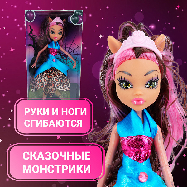 «Сказочные Монстрики» — это яркая и стильная кукла, которая станет отличным подарком для детей от 6 лет и старше. У неё зелёная кожа, выразительные глаза и длинные светлые волосы, украшенные диадемой. Кукла одета в красный корсет с узорами и многоцветную юбку с отделкой и перьями.