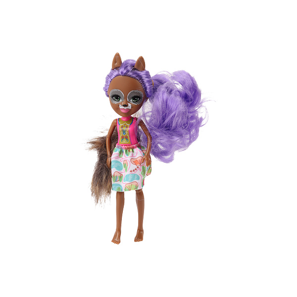 Кукла с длинными волосами фиолетового цвета будет с радостью принята любой маленькой девочкой. Дизайн игрушки вызывает ассоциации со сказочными лесными феями. Тематику подчеркивает нестандартный макияж, выступающие ушки и необычный наряд. Подвижные конечности позволят усложнить игру, внесут в нее больше динамики.