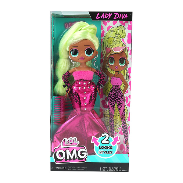 Леди Дива привлекает внимание своими длинными светлыми волосами и яркими сценическими образами. В набор входит сразу два наряда: с элегантной юбкой и меховым топом и с розовыми леопардовыми брюками. Дополняют костюмы длинные перчатки, розовые туфли на высоком каблуке и солнцезащитные очки. Держать прическу в порядке поможет миниатюрный гребешок.