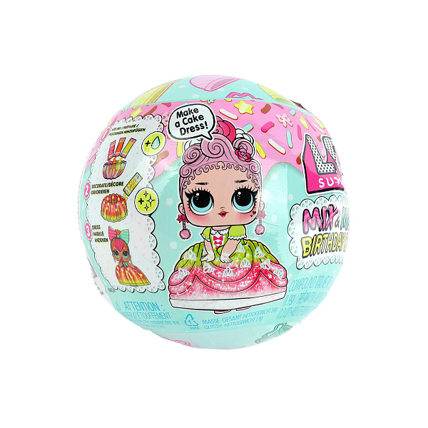 Шар с необычным наполнением удивит и порадует ребенка старше 3 лет. Внутри упаковки скрывается куколка L.O.L. и все необходимые компоненты, позволяющие создать платье в виде торта. Содержимое пакетиков потребуется засыпать в форму, залить водой. Через несколько минут уникальный наряд для бала будет готов.