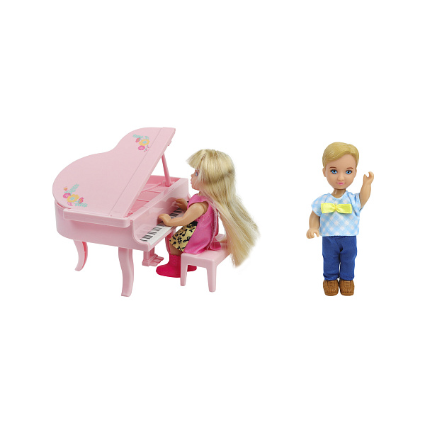 Набор игрушек Kiki love станет отличной сюжетно-ролевой игрушкой ребенка. В набор входит все необходимое для увлекательной игры: маленькая кукла-пианистка, певец, пианино и стульчик. Каждая деталь тщательно проработана: блондинка одета в розовое платье, декорированное нотами, и высокие сапожки в ярко-розовом цвете. Мальчик-певец одет в стильную голубую рубашку с бантом и синие штаны с коричневыми туфлями. Изделие изготовлено из пластика. Поставляется в красочной упаковке и предназначается для детей старше 3 лет.