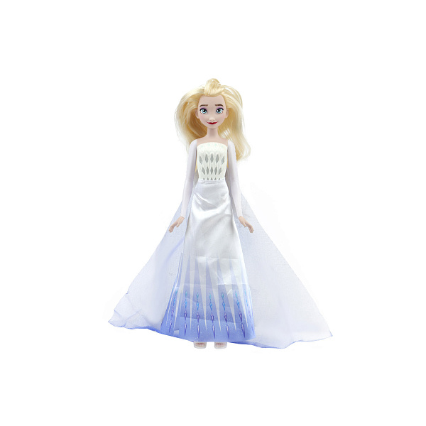 Изящная кукла создана по мотивам диснеевского мультфильма «Холодное сердце». Эльза станет желанным подарком для девочек. Королева Эльза одета в красивое платье бело-голубого цвета с блестками. Белые туфли на каблуках можно снимать и надевать снова. У куклы длинные светлые волосы. Под ними на спине прячется кнопка для включения звука. Эльза умеет петь, чем порадует ребенка. Для воспроизведения звуковых эффектов понадобятся 3 батарейки А76 (входят в комплект).