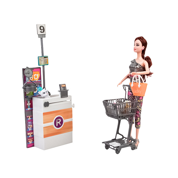 Игровой набор послужит долгожданным подарком для ребенка старше 3 лет. В красочной коробке ребенок обнаружит куклу с забавным питомцем в корзинке, стойку с кассовым аппаратом, тележку для покупок и другие реалистичные аксессуары, позволяющие усложнить игру. Взаимодействие с подобными игрушками развивает фантазию и моторику рук, положительно влияет на память, логическое мышление, формирует базовые социальные и бытовые навыки.