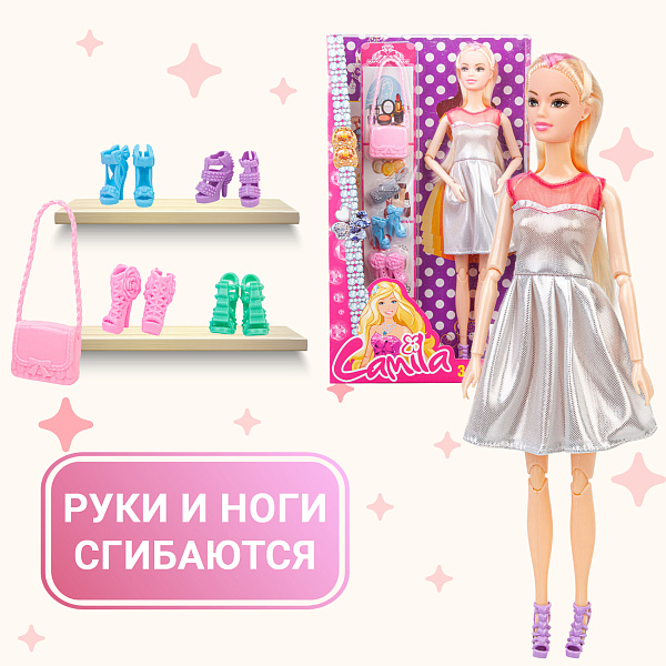 Прекрасная кареглазая блондинка Камила с длинными блестящими локонами дополнит арсенал каждой девочки. Кукла выполнена в ярком красочном образе, который дополняется универсальным нарядом, подходящим на все случаи жизни.