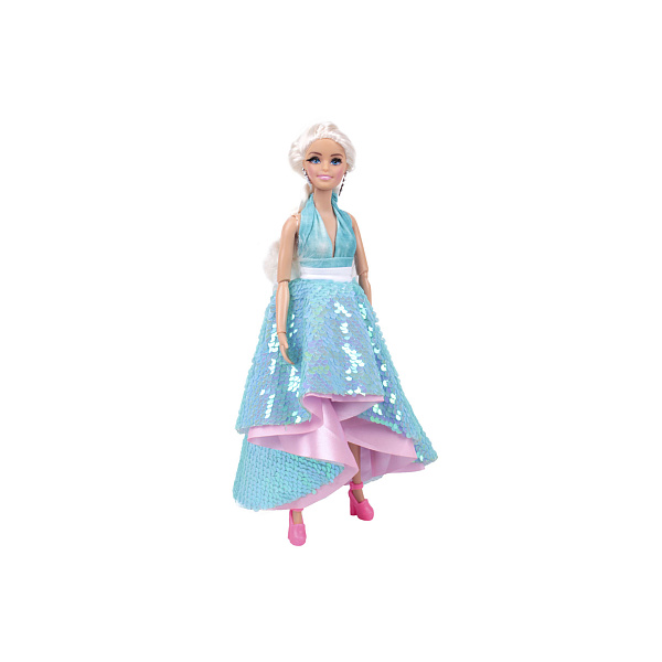 Обязательным атрибутом каждого гардероба является сказочное бальное платье, в котором настоящая принцесса просто обязана сходить на бал. Кукла София представлена в шикарном романтическом образе – в платье с пайетками нежного голубого цвета, перекликающегося с розовой волной. Открытые плечи наряда изящно подчеркиваются белоснежным поясом, в гармонии с которым имеются розовые туфли. В комплект также входит два вида расчесок, с помощью которых девочки смогут делать великолепные прическе любимой кукле. Высота игрушки – 30см.