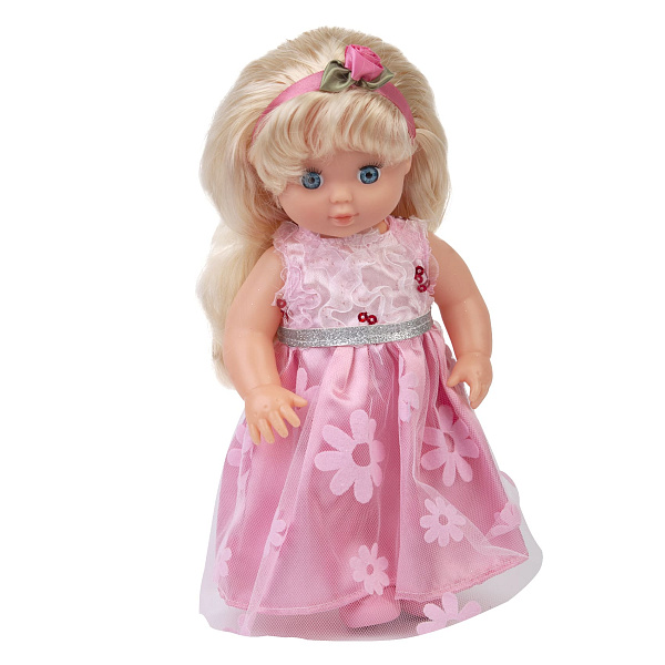 Малышка с роскошными густыми локонами и шелковой лентой в волосах одета в романтичное платье розового цвета с кружевами. К игрушке прилагается паспорт, а если нажать на живот, то Вера начнет рассказывать стихи Агнии Барто, петь песенки и разговаривать. В комплекте расческа, чтобы чудесная прическа куклы всегда была в порядке.