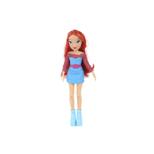 Нежная феечка Блум из популярного мультфильма «Винкс» станет любимой подружкой девочки. Шарнирная кукла повторяет образ своего мультяшного героя: у нее яркие и длинные рыжие волосы, большие голубые глаза, блестящая розовая блуза и голубой сарафанчик. Дополняют образ стильные ботинки на платформе в тон одежде.