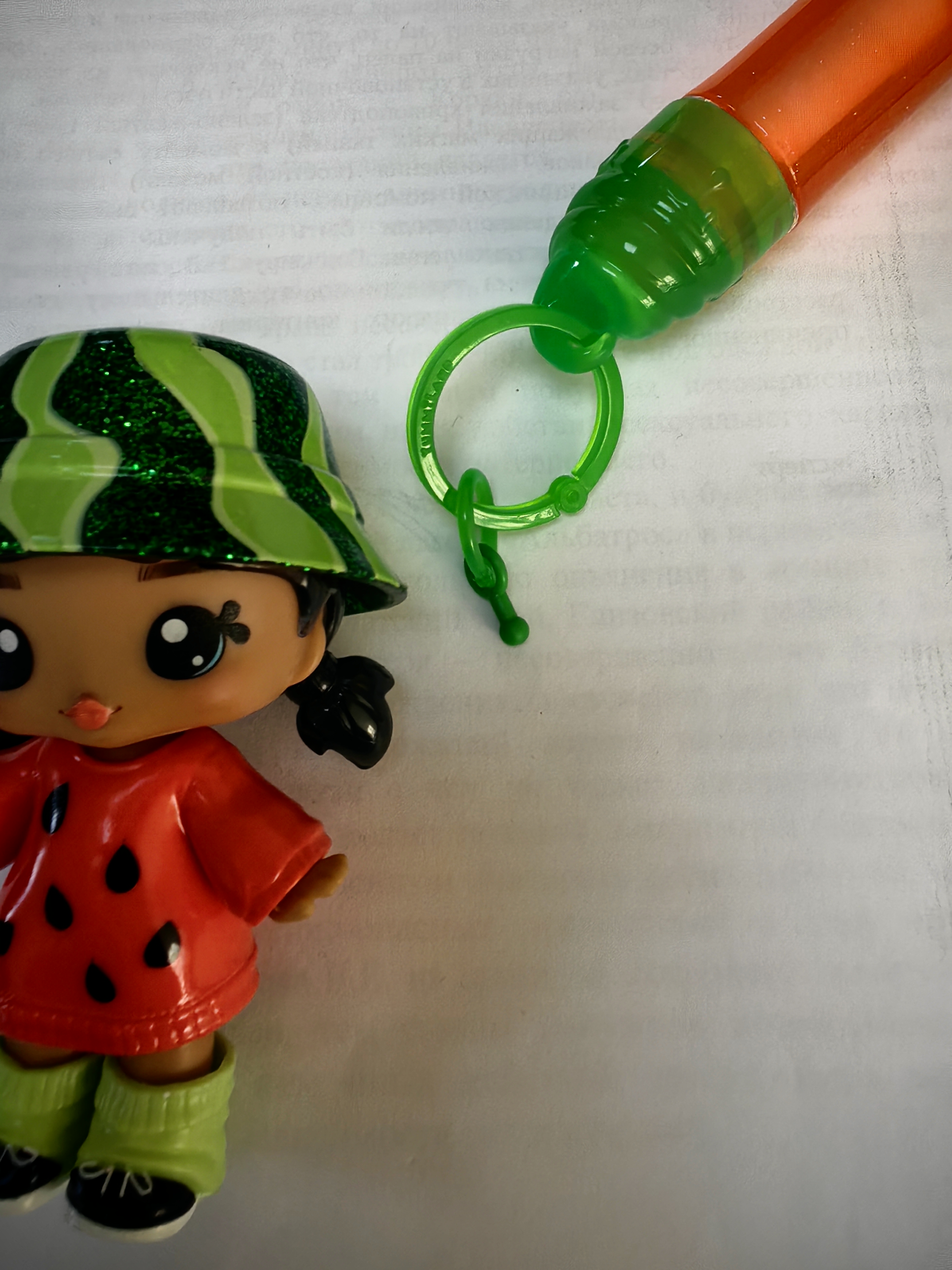 Кукла Мая Ватермелон и набор для создания блеска для губ — это сочетание веселья и творчества, идеально подходящее для маленьких модников. Мая, стильная кукла в ярком арбузном наряде, вдохновляет на создание удивительных образов.