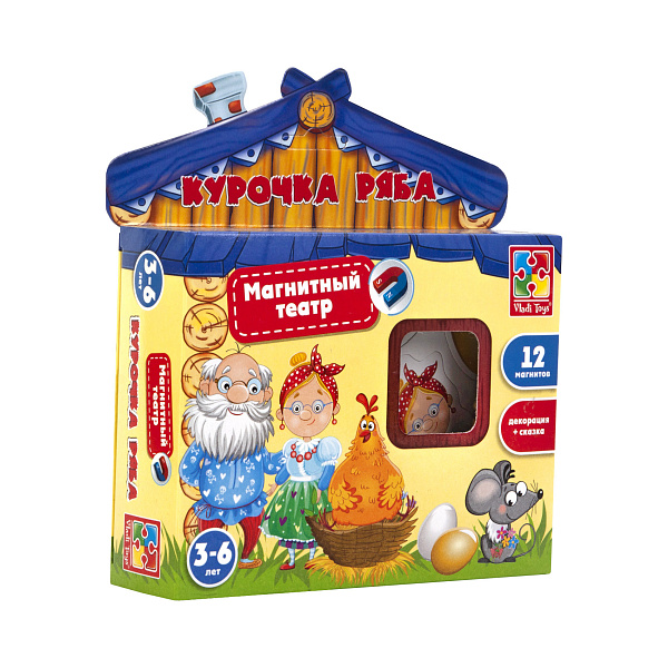 Кукольный магнитный театр с героями известной русской народной сказки «Курочка Ряба» - веселое и занимательное развлечение для вашего ребенка! Набор включает в себя сказочную декорацию и объемные магнитные детали с главными героями. Все детали выполнены из безопасных для здоровья материалов. Вы можете разыгрывать настоящую версию сказки, а можете позволить ребенку самому проявить воображение и придумать собственную историю. Играя в кукольный театр, малыш будет развивать речевые навыки, мелкую моторику и творческие способности.