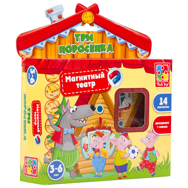 Кукольный магнитный театр с героями известной русской народной сказки «Три поросенка» - веселое и занимательное развлечение для вашего ребенка! Набор включает в себя сказочную декорацию и объемные магнитные детали с главными героями. Все детали выполнены из безопасных для здоровья материалов. Вы можете разыгрывать настоящую версию сказки, а можете позволить ребенку самому проявить воображение и придумать собственную историю. Играя в кукольный театр, малыш будет развивать речевые навыки, мелкую моторику и творческие способности.