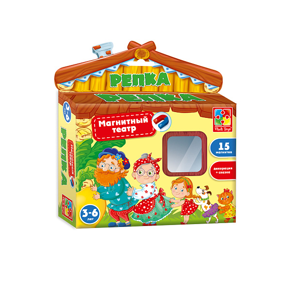 Кукольный магнитный театр с героями известной русской народной сказки «Репка» - веселое и занимательное развлечение для вашего ребенка! Набор включает в себя сказочную декорацию и объемные магнитные детали с главными героями. Все детали выполнены из безопасных для здоровья материалов. Вы можете разыгрывать настоящую версию сказки, а можете позволить ребенку самому проявить воображение и придумать собственную историю. Играя в кукольный театр, малыш будет развивать речевые навыки, мелкую моторику и творческие способности.