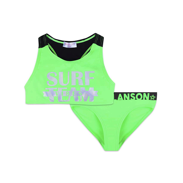 Сочный неоново-зеленый купальник чудесно подойдет девочкам, которые любят быть центре внимания. Купальный костюм состоит из двух частей: комфортные плавки и спортивный топ. Трусики-плавки изготовлены из эластичной ткани, которая не собирается в складки и не впиваются в кожу. А верх купальника похож на спортивный топ - он хорошо сидит на фигуре любого типа и не сползнает. Такой купальник чудесно подходит для купания в пресной воде, на море или в хлорированном бассейне, ткань не линяет и не выцветает.