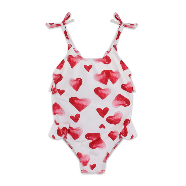 Слитный купальник понравится девочке дошкольного возраста, создаст все условия для комфортного отдыха. Модель имеет округлый вырез на спинке, декорированный оборкой. Скорректировать посадку позволят узкие вязки на плечах. Прилегающий силуэт не сковывает движения, не отвлекает ребенка от веселых игр и водных процедур.