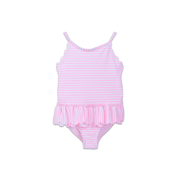 Каждой юной моднице захочется побыть в центре внимания в этом чудесном купальнике Lanson Kids. Нежно розовый слитный купальник в полоску состоит из эластана – благодаря своим свойствам ткань легко тянется и хорошо садится на фигуру, не сковывая движения во время купания. Рюши на поясе составляют изящную юбочку, что еще больше понравится юным принцессам, а тонкие лямки придадут нежности в образ. Такой купальник отлично подойдет для игр на море, в речке или бассейне – ткань чудесно ведет себя в любой воде, не линяет и не рвется.