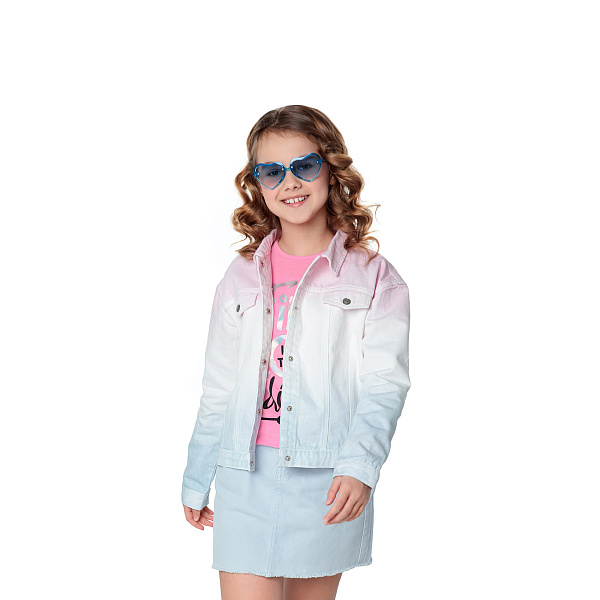 Модная джинсовая куртка для девочки оформлена в нежных тонах с применением техники «градиент». Модель предназначена для дошкольницы и школьницы, она органично дополнит гардероб маленькой модницы. Джинсовая куртка мудьтиколор чудесно сочетается с любыми брюками, юбками и платьями, а также легко выручит вечером или в прохладный день. Прочный материал состоит из 100% хлопка, который устойчив к истиранию и износу. Такая ткань обеспечивает естественную вентиляцию, не деформируется в процессе использования. Продукция отвечает требованиям безопасности, требует предварительной стирки.