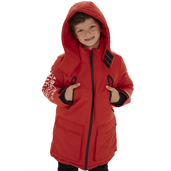 Зимняя куртка удлиненного силуэта предназначена для мальчика дошкольного возраста. Модель создана с учетом всех потребностей юного исследователя. Она имеет капюшон, четыре кармана, трикотажные манжеты и удобную застежку в виде молнии. В качестве украшения использована графическая надпись и контрастные элементы. На спинке имеются светоотражающий рисунок.