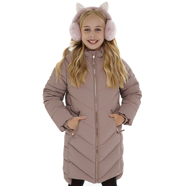 Удлиненная зимняя куртка пыльно розового цвета согреет ребенка в холодное время года. Выполнена из искусственного материала, который хорошо сохраняет тепло. В качестве дополнительного утеплителя внутри синтетическое наполнение. Есть объемный капюшон, способный защитить от ветра и снега. Сзади на спине предусмотрены светоотражающие элементы, помогающие заметить детей в темноте.