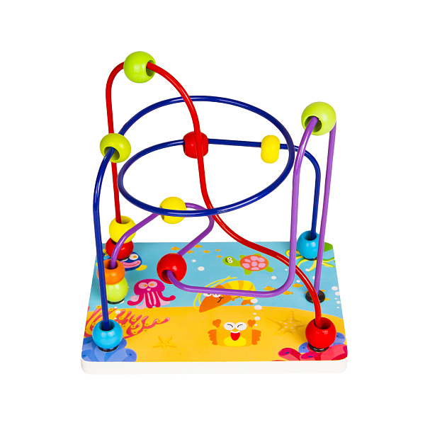 Поначалу ребенок будет с интересом передвигать шарики и рассматривать подставку с изображенными на ней жителями морских глубин, но по мере взросления появится желание разгадать этот ребус и довести все колечки до их конечного пункта по перекрученным между собой проволокам.