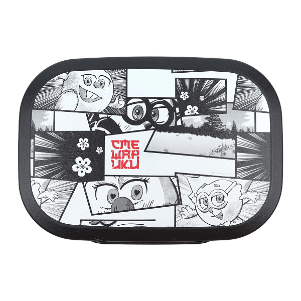 Контейнер имеет компактные размеры — 180×130×50 мм, что удобно для размещения в школьном рюкзаке или детской сумке. Ланч-бокс оснащен надежной крышкой с фиксацией, предотвращающей случайное открытие. Изделие подходит для использования в микроволновой печи, однако рекомендуется нагревать еду только с открытой крышкой.
