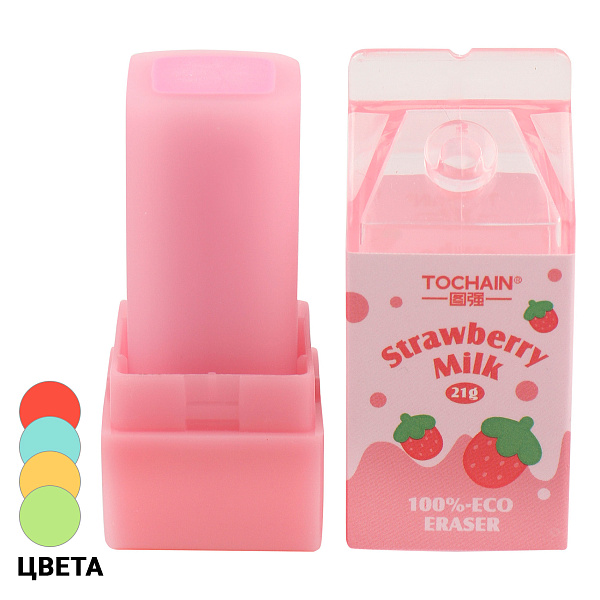 Ластик «Напиток» — яркое дополнение к школьному арсеналу. Каждая упаковка выполнена в виде миниатюрной коробки с молочным напитком, что делает дизайн особенно привлекательным для детей. В ассортименте представлены четыре соблазнительных «вкуса»: клубничное, банановое, шоколадное и обычное молоко.