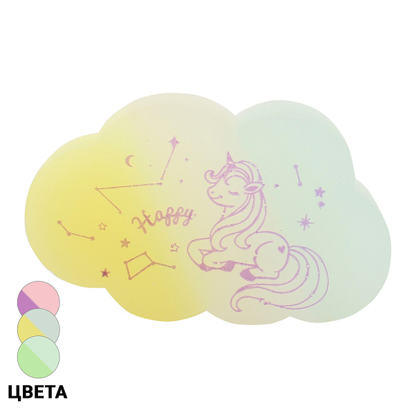 Ластик в форме облачка с милым рисунком единорога подойдет для аккуратного удаления карандашных линий. Не размазывает графит и не оставляет мелкой бумажной пыли, обеспечивая чистоту рабочего пространства. Обтекаемая, эргономичная форма специально разработана для удобного захвата детскими руками, что делает процесс стирания максимально комфортным.