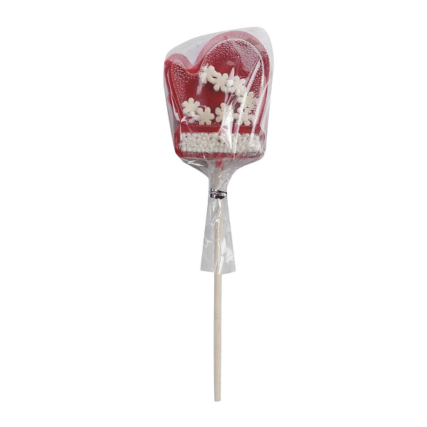 Леденец на палочке станет отличным дополнением новогоднего подарка. Конфета украшена тематическим узором. Яркий цвет создает праздничное настроение. Леденец подходит для сладкого подарка в холодное время года. Его можно использовать как элемент зимнего декора.