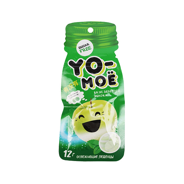В линейке леденцов YO-МОЁ превосходным вкусом обладает драже со вкусом зеленого яблока. В жаркий день, при физической или психологической усталости, во время напряженной работы будет приятно взбодриться конфеткой, которая поддержит силы и наполнит рот фруктовой свежестью.