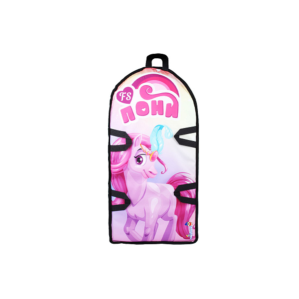 Ледянки изготовлены из особо прочного материала ПВХ. Их верх украшен принтом с цветным изображением лошадки-пони, а нижняя часть одноцветная.