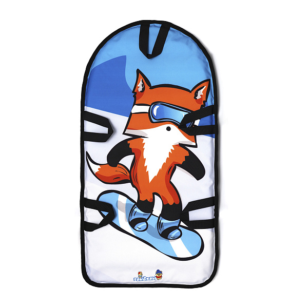 Ледянка FANI SANI Лисенок представляет собой двухместное изделие размером 90х45 см с ярким рисунком в виде лисенка на сноуборде. Изделие оснащено прочными ручками из стропы, которые позволяют удобно держаться и управлять движением во время катания. Верхняя часть изготовлена из водостойкой ткани Оксфорд плотностью 600 г/м², нижняя часть — из прочного тента ПВХ. Все швы выполнены с капроновой лентой для дополнительной надежности.