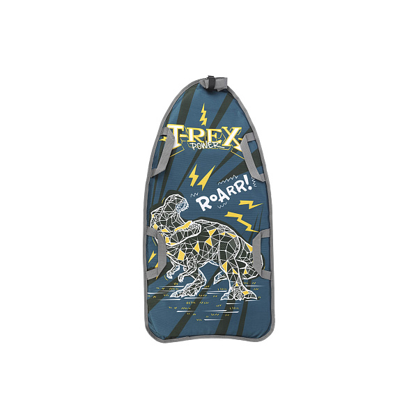 Пять удобных ручек позволяют удержаться в процессе спуска, без труда перенести приспособление в нужное место. Ледянка предназначена для двоих. Можно кататься вместе с лучшим другом, любимым братом или сестрой. Размеры изделия 90Х42 см. Цветовая гамма в темных оттенках, что делает изделие практичным. Занимательный принт в виде динозавра привлечет внимание как девочек, так и мальчиков.