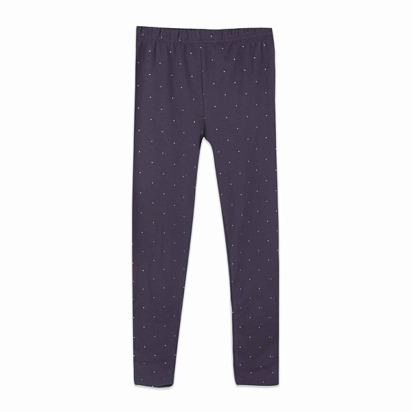 Утепленные легинсы темно-синего цвета с мелким белым горошком станут отличным дополнением гардероба ребенка в прохладное время года. Они выполнены из эластичного и мягкого материала, состоящего на 95% из хлопка и на 5% из эластана. Легинсы не сковывают движений и подходят активной девочке.