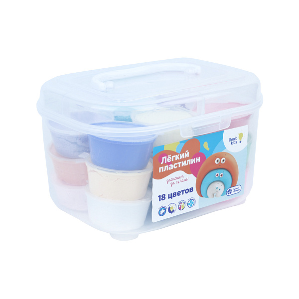 Яркий воздушный пластилин обладает высокой гибкостью и тягучестью. Он ориентирован на малышей старше 3 лет, предназначен для домашнего творчества. Во вместительной пластиковой емкости ребенок найдет 18 баночек разного цвета. Манипуляции с легкой полимерной массой надолго займут внимание детей, а также подарят немало позитивных эмоций. Лепка положительно влияет на воображение, моторику рук, логическое мышление и память. Поделки полностью высыхают в течение суток. Во избежание высыхания продукт необходимо хранить в закрытой таре. Материал в составе не содержит вредных веществ, не пачкает руки малышей. Он безопасен для детского организма и не вызывает аллергической реакции.