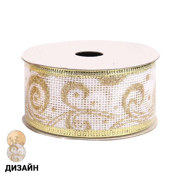 Лента новогодняя Зимние узоры золотая 3,8х270см в ассортименте