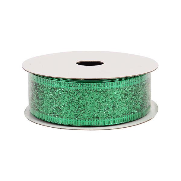 Зеленая упаковочная лента с глиттером пригодится для упаковки подарков и творческих занятий. Лента без узора изготовлена из синтетических текстильных нитей. С ее помощью легко украсить букет или перевязать подарочную коробку и дополнить ее праздничным бантом. Такую ленту можно использовать и для украшения маскарадных костюмов, в которых ребенок пойдет на новогодний утренник. С помощью ленты можно декорировать игрушки, сделанные своими руками, а также создавать красивые аппликации. Тонкую ленту насыщенного зеленого цвета с блестящим глиттером можно использовать отдельно или комбинировать с лентами других оттенков.