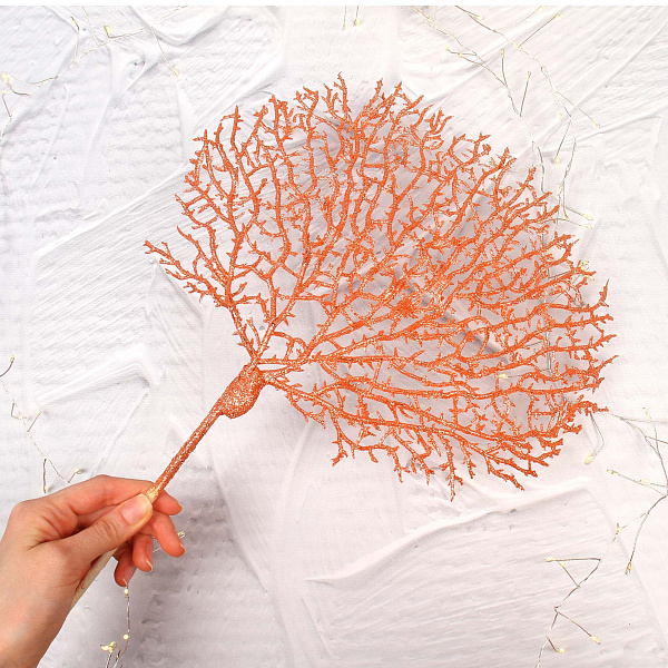 Красный лист калоцефалус — утонченный декоративный элемент, который наполнит интерьер свежестью и воздушностью. Высотой 50 см, этот декоративный лист выполнен из пластика и украшен красным мерцающим покрытием с эффектом блесток, придающим изделию нежное и изысканное сияние. Сетка из тонких веточек и филигранная структура листа создают впечатление природной легкости и элегантности. Благодаря универсальному стилю и мягкому голубому оттенку, этот декоративный элемент станет ярким акцентом в флористических композициях, праздничном оформлении или повседневном интерьере.
