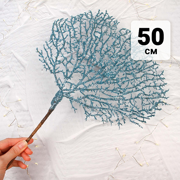 Голубой лист калоцефалус — утонченный декоративный элемент, который наполнит интерьер свежестью и воздушностью. Высотой 50 см, этот декоративный лист выполнен из пластика и украшен голубым мерцающим покрытием с эффектом блесток, придающим изделию нежное и изысканное сияние. Сетка из тонких веточек и филигранная структура листа создают впечатление природной легкости и элегантности. Благодаря универсальному стилю и мягкому голубому оттенку, этот декоративный элемент станет ярким акцентом в флористических композициях, праздничном оформлении или повседневном интерьере.