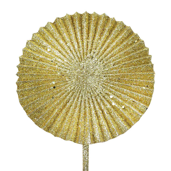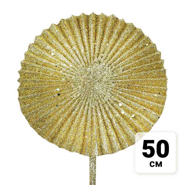 Лист декоративный Ликуала с глиттером рельефный золотистый 50см