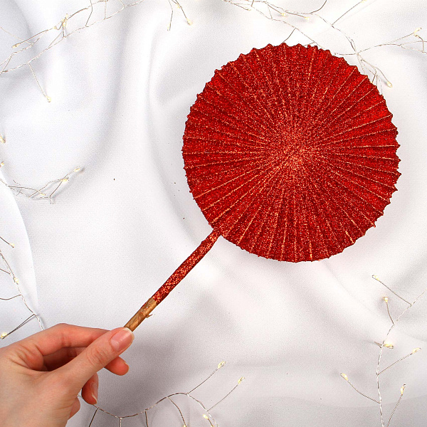 Декоративный лист ликуала в красном исполнении – стильный элемент декора в современном лофт-стиле. Изделие выполнено из пластика и имеет высоту 50 см. Круглый лист с характерной ребристой фактурой покрыт красным блестящим напылением, что придает ему изысканный и праздничный вид. Такой декор идеально подойдет для оформления интерьера, создания флористических композиций и праздничных акцентов, добавляя элегантности и сияния любому пространству.