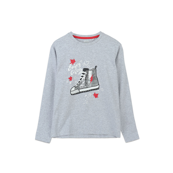 Трикотажный лонгслив можно надевать в качестве основного слоя под джинсы или юбку, а также под теплую кофту в виде нательного белья. кофта пошита из натурального хлопка и эластана, имеет обработанную круглую горловину без ворота, длинные рукава и свободный крой, который не сковывает движения. По центру изображен кроссовок, окруженный небольшими листиками и текстовой термопечатью. Сочетание хлопка и эластана в основе ткани повышает мягкость и эластичность лонгслива. Материалы хорошо пропускает воздух и бережно сохраняют тепло. Рекомендовано для детей дошкольного и школьного возраста.
