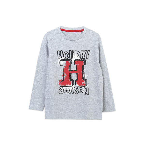Стильный лонгслив порадует каждого маленького непоседу. В основе ткани использован натуральный хлопок с небольшой добавкой эластана, комбинации материалов делают ткань мягкой и приятной на ощупь, улучшают воздухообмен и эластичность. Свободный крой не сковывает движения, а длинные рукава уберегут руки от прохладного воздуха. Вырез горловины круглый, без воротника. Завершает дизайн красочный новогодний принт с надписью «Сезон праздников». Рекомендовано для детей дошкольного и школьного возраста.